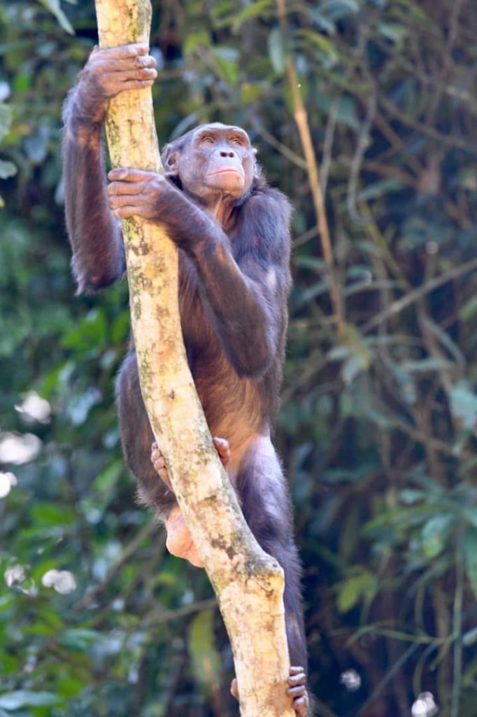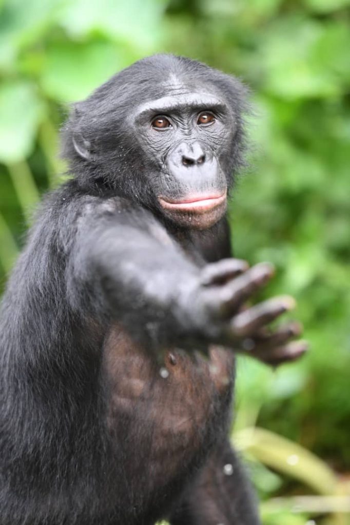 “Bonobos are often afraid of outsiders; they see you as strangers, and therefore a threat,” explains Ms. Suzy Nzuzi, head of bonobo social welfare and ecotourism at the NGO Les Amis des Bonobos du Congo (ABC) at the Lola ya Bonobo sanctuary.